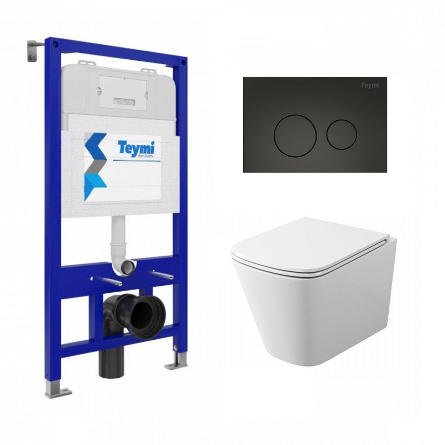 Комплект инсталляции Teymi Aina 52 T70011 с клавишей смыва T70103BM и унитазом Teymi T40302