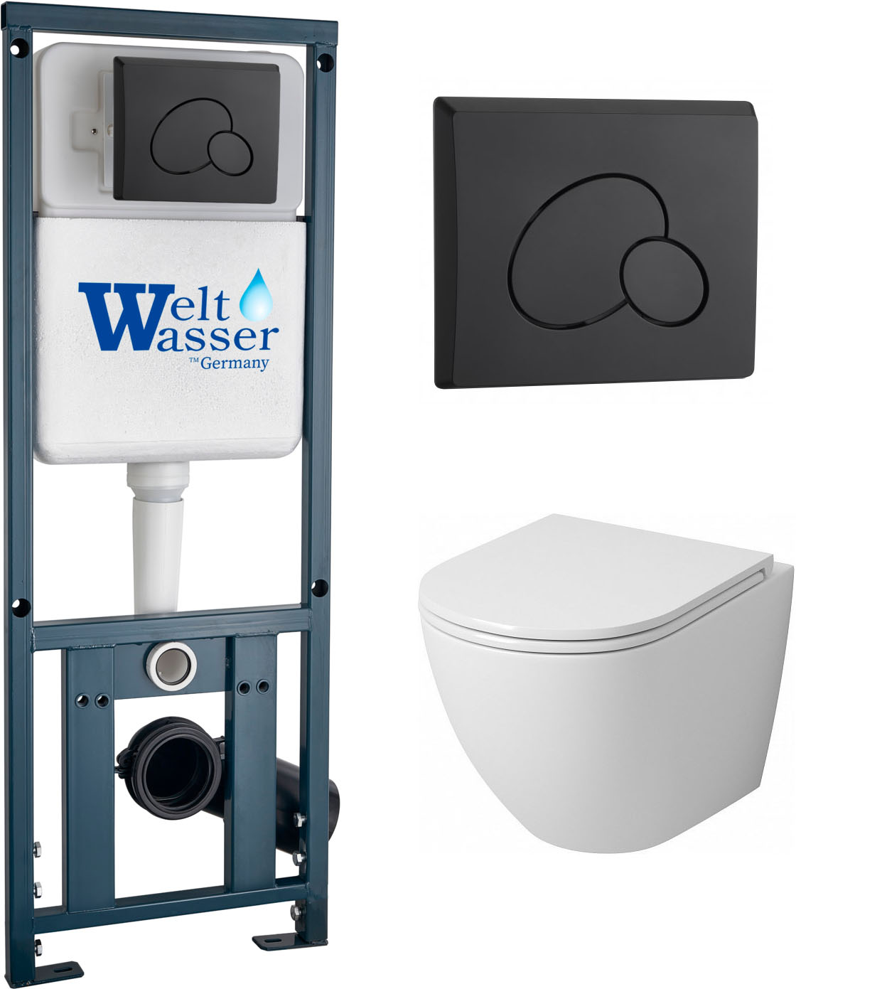 Комплект инсталляции Welt-Wasser 410 RD с клавишей смыва BL и унитазом Grossman GR-4455SQ