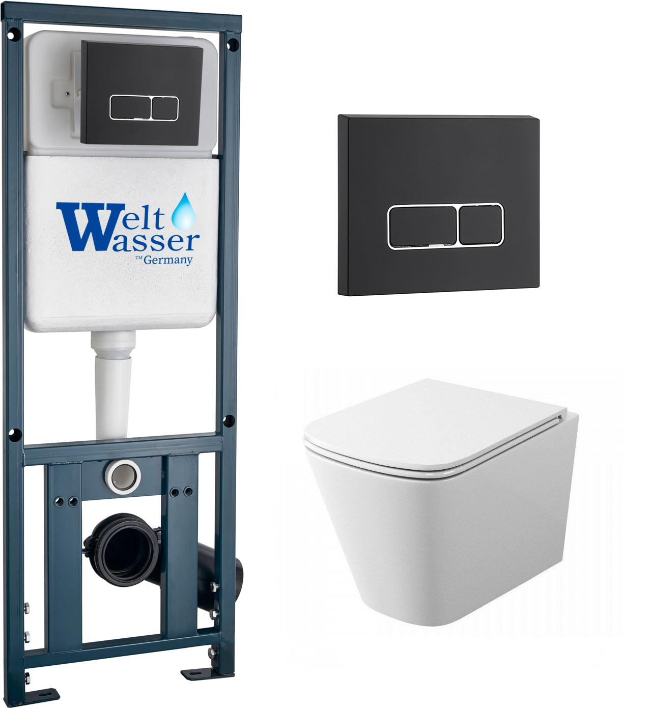 Комплект инсталляции Welt-Wasser 410 SE с клавишей смыва BL и унитазом Teymi T40302