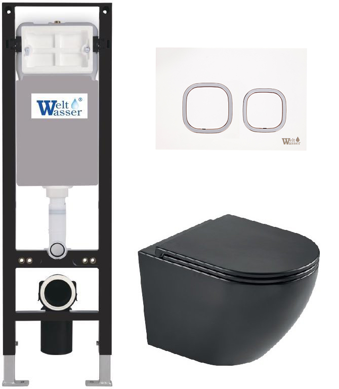 Комплект инсталляции Welt-Wasser AMBERG 350 с клавишей смыва AMBERG RD-WT и унитазом MERZBACH 043 XL MT-BL