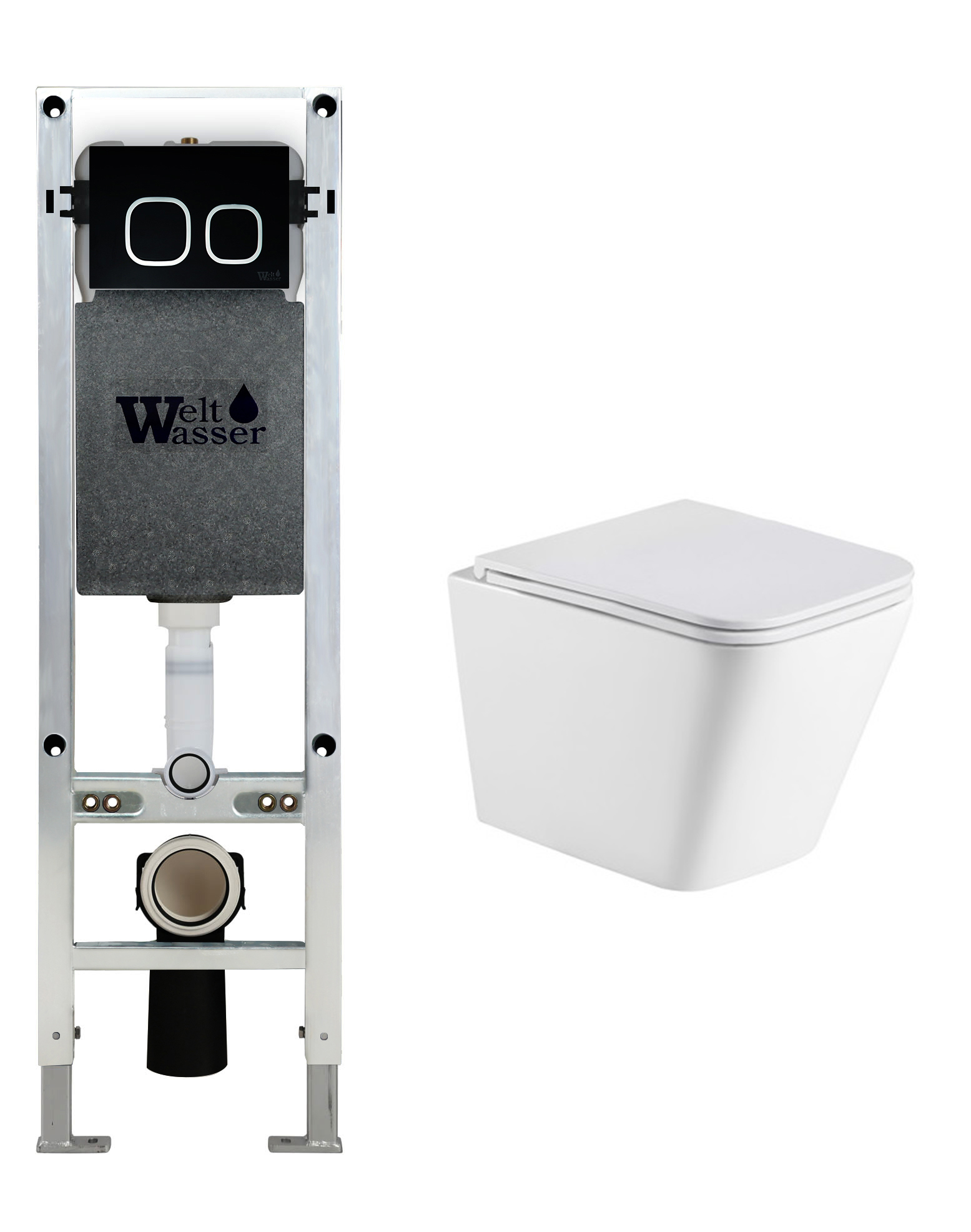 Комплект инсталляции Welt-Wasser AMBERG 350 ST с унитазом GELBACH 043 GL-WT и клавишей смыва AMBERG RD-BL, черный матовый