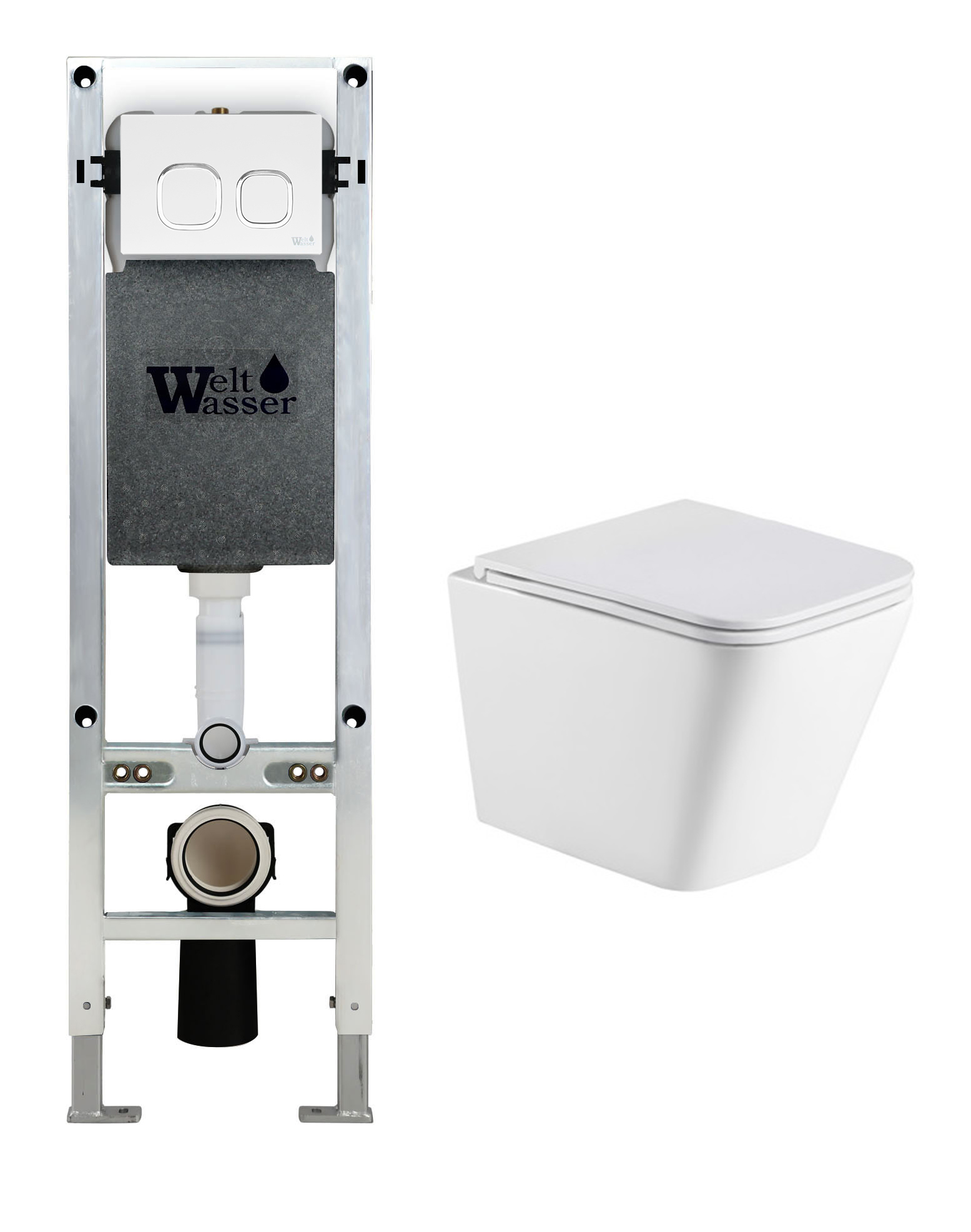 Комплект инсталляции Welt-Wasser AMBERG 350 ST с унитазом GELBACH 043 GL-WT и клавишей смыва AMBERG RD-WT, белый