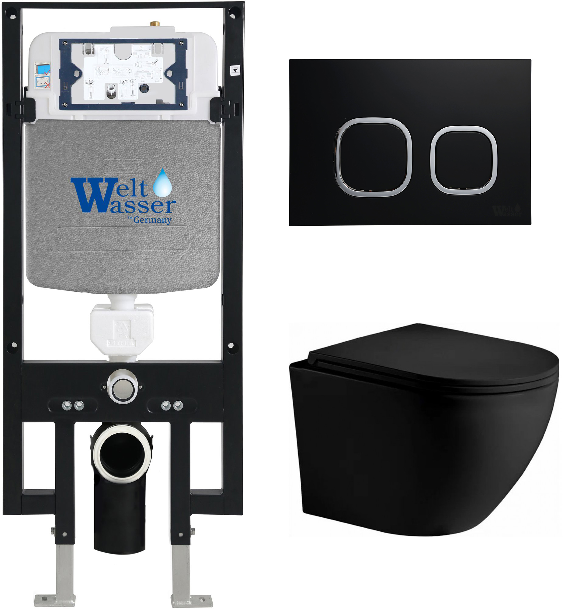 Комплект инсталляции Welt-Wasser AMBERG 497 с клавишей смыва AMBERG RD-BL и унитазом MERZBACH 043 XL MT-BL