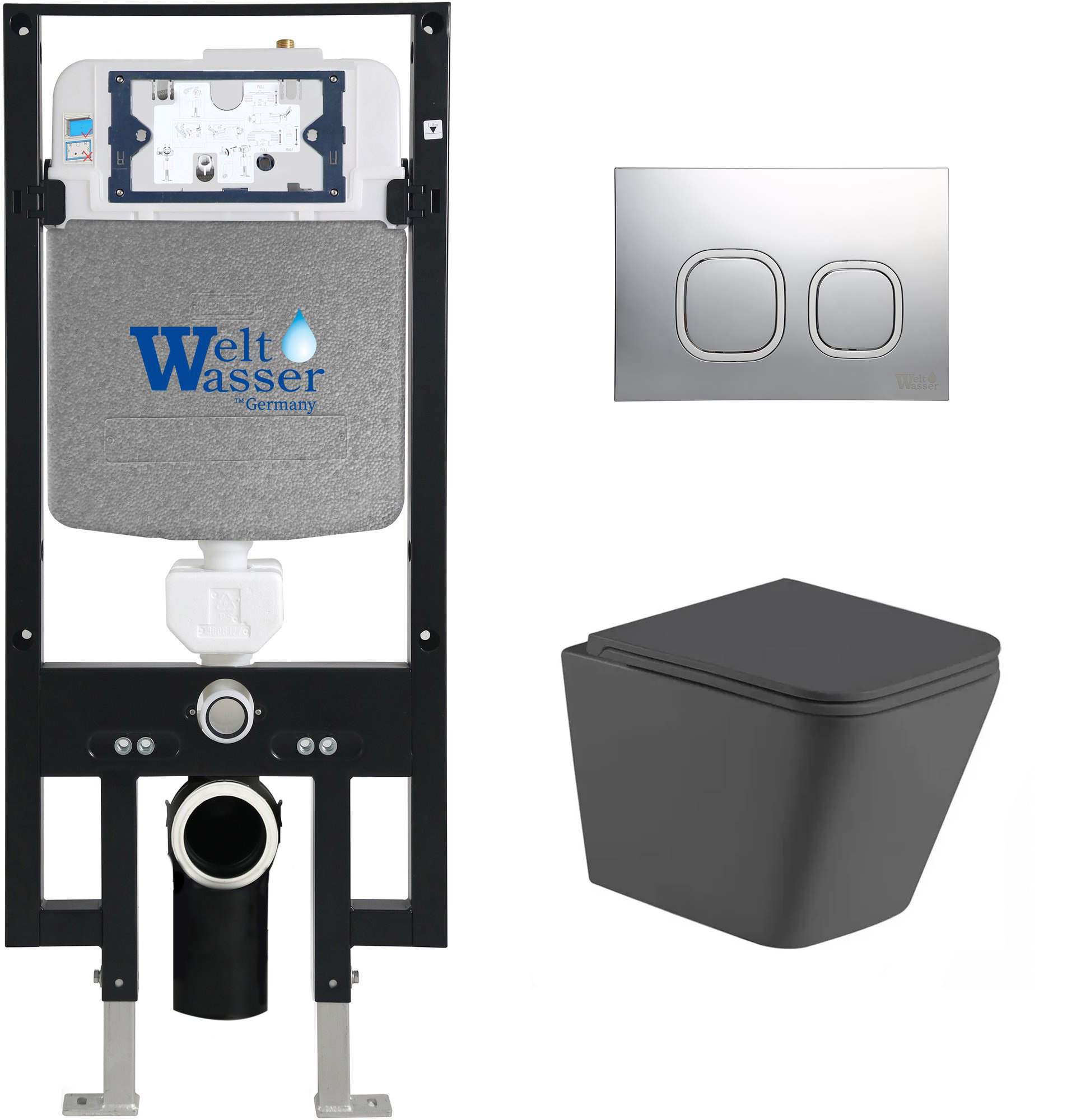 Комплект инсталляции Welt-Wasser AMBERG 497 с клавишей смыва AMBERG RD-MT CR и унитазом GELBACH 043 MT-GR