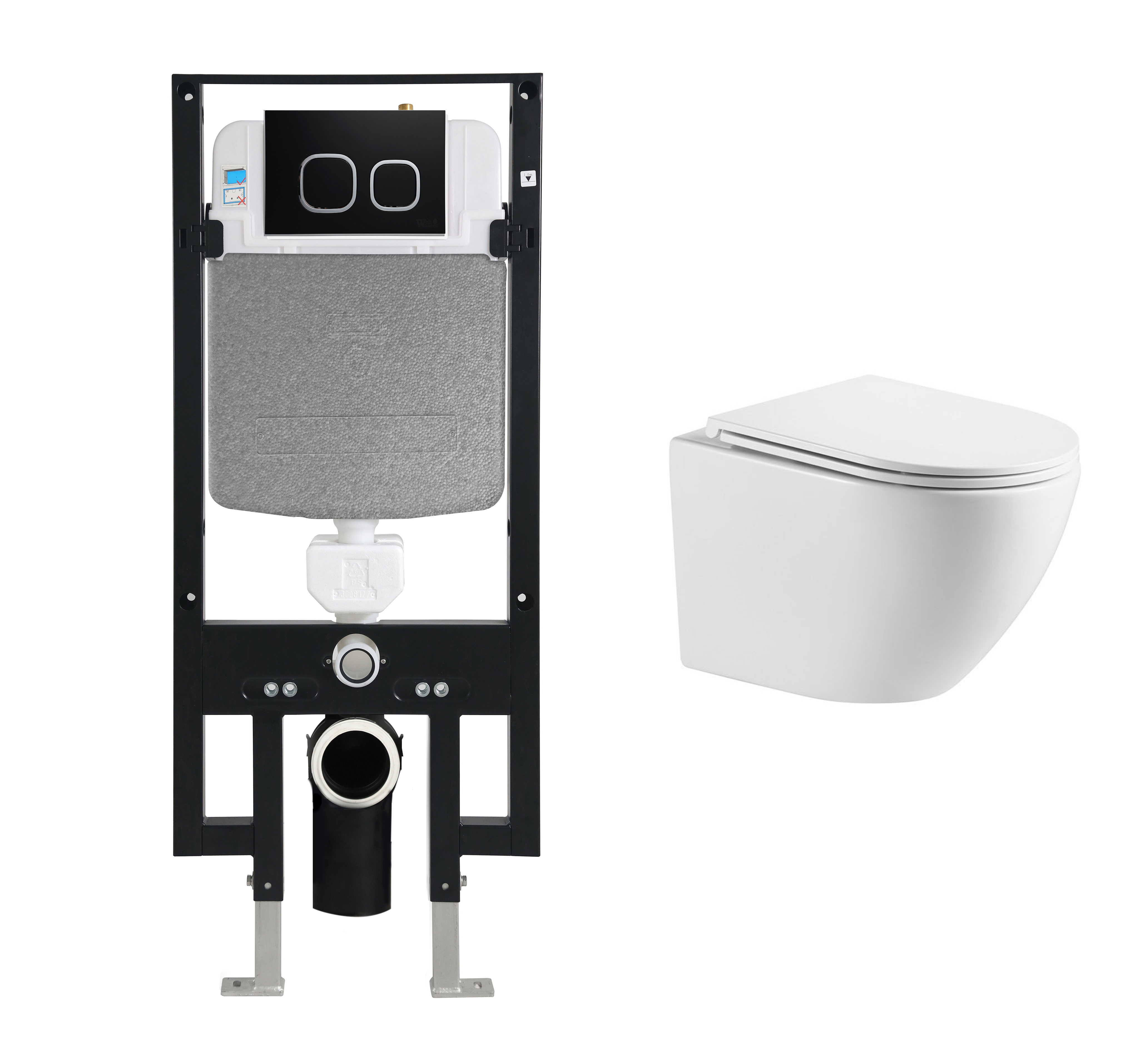 Комплект инсталляции Welt-Wasser AMBERG 497 с унитазом MERZBACH 043 GL-WT и клавишей смыва AMBERG RD-BL, черный матовый