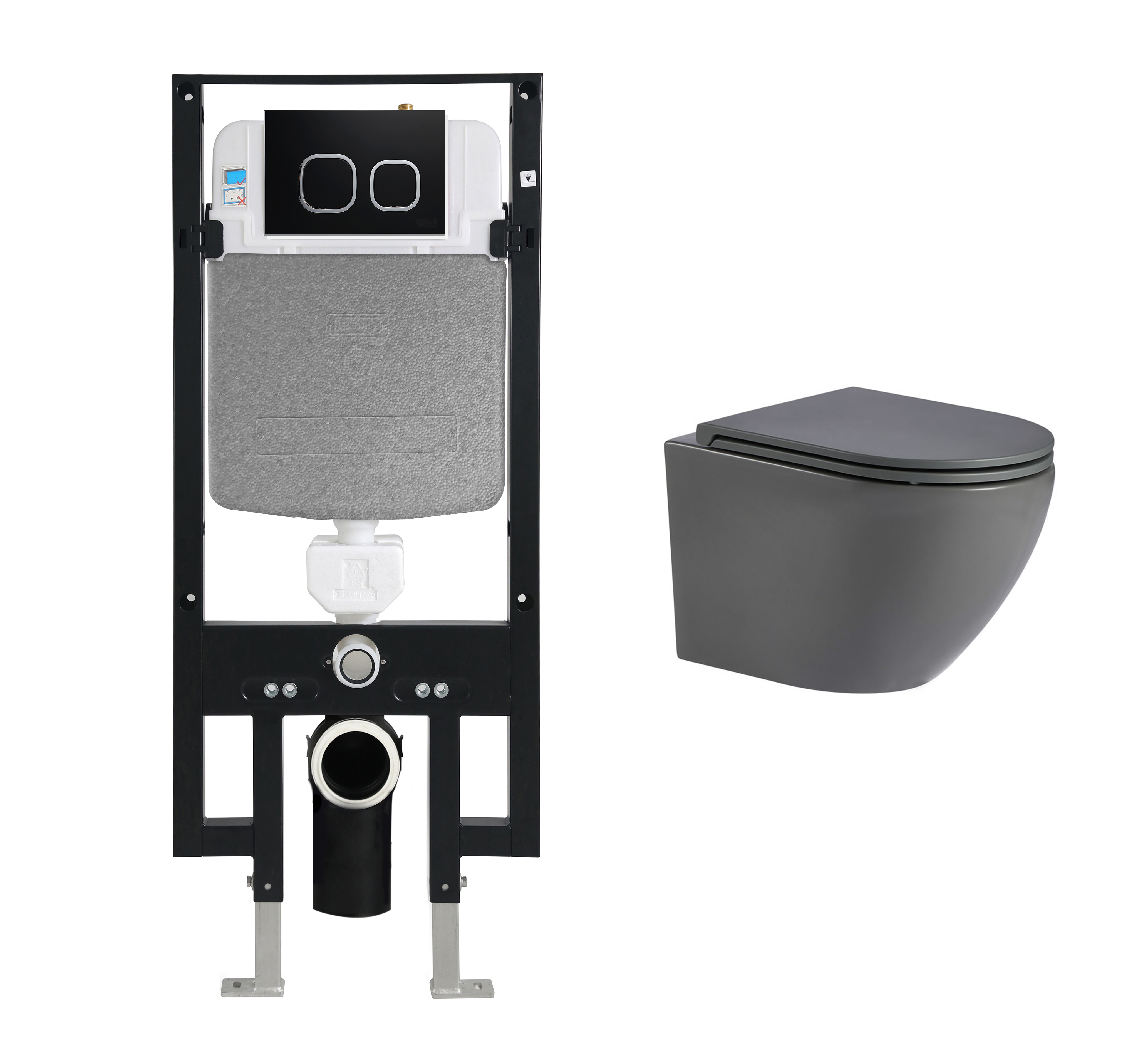 Комплект инсталляции Welt-Wasser AMBERG 497 с унитазом MERZBACH 043 MT-GR и клавишей смыва AMBERG RD-BL, черный матовый
