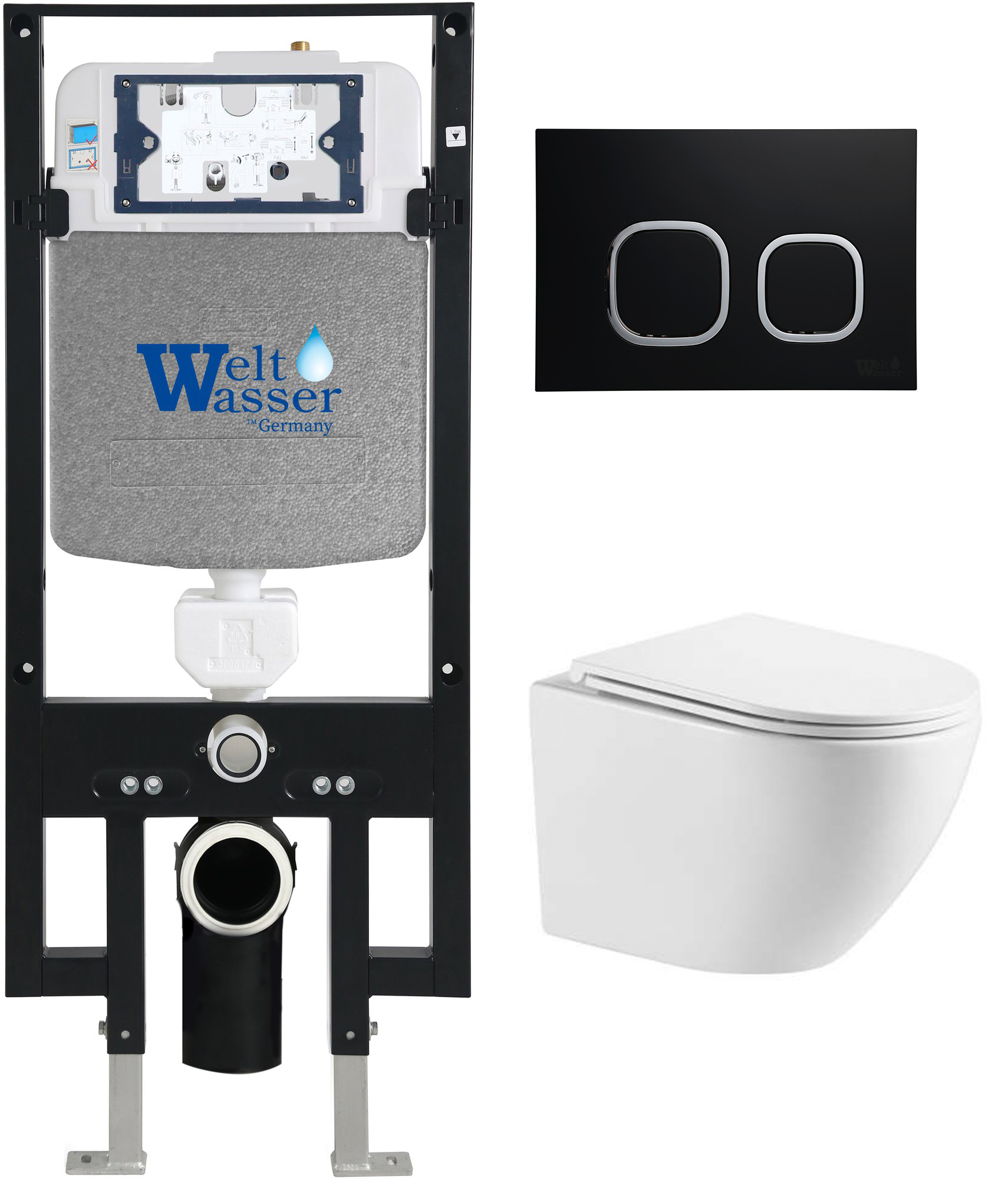 Комплект инсталляции Welt-Wasser AMBERG 497 с унитазом MERZBACH 043 XL GL-WT и клавишей смыва AMBERG RD-BL черный матовый
