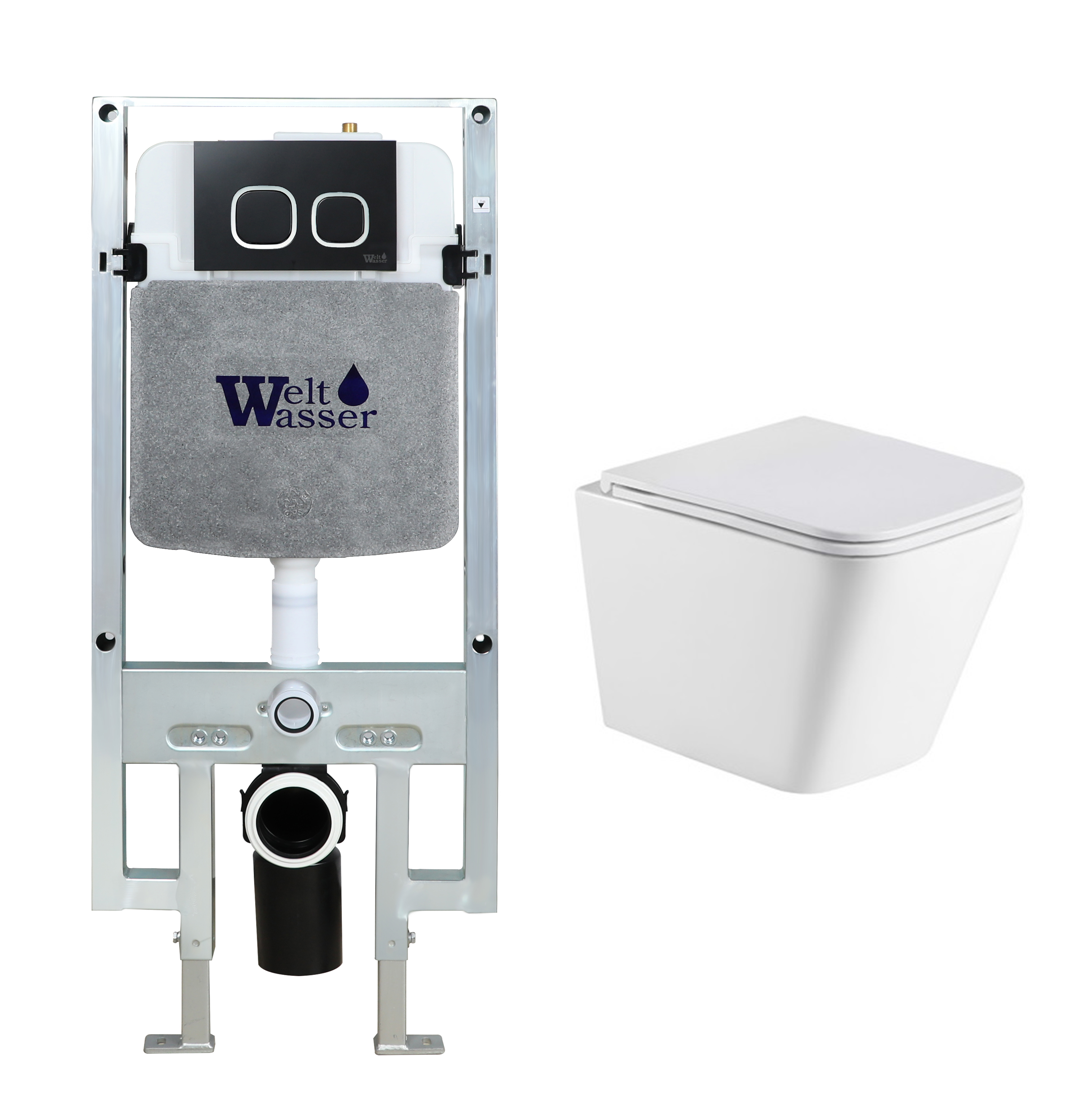 Комплект инсталляции Welt-Wasser AMBERG 497 ST с унитазом GELBACH 043 GL-WT и клавишей смыва AMBERG RD-BL, черный матовый