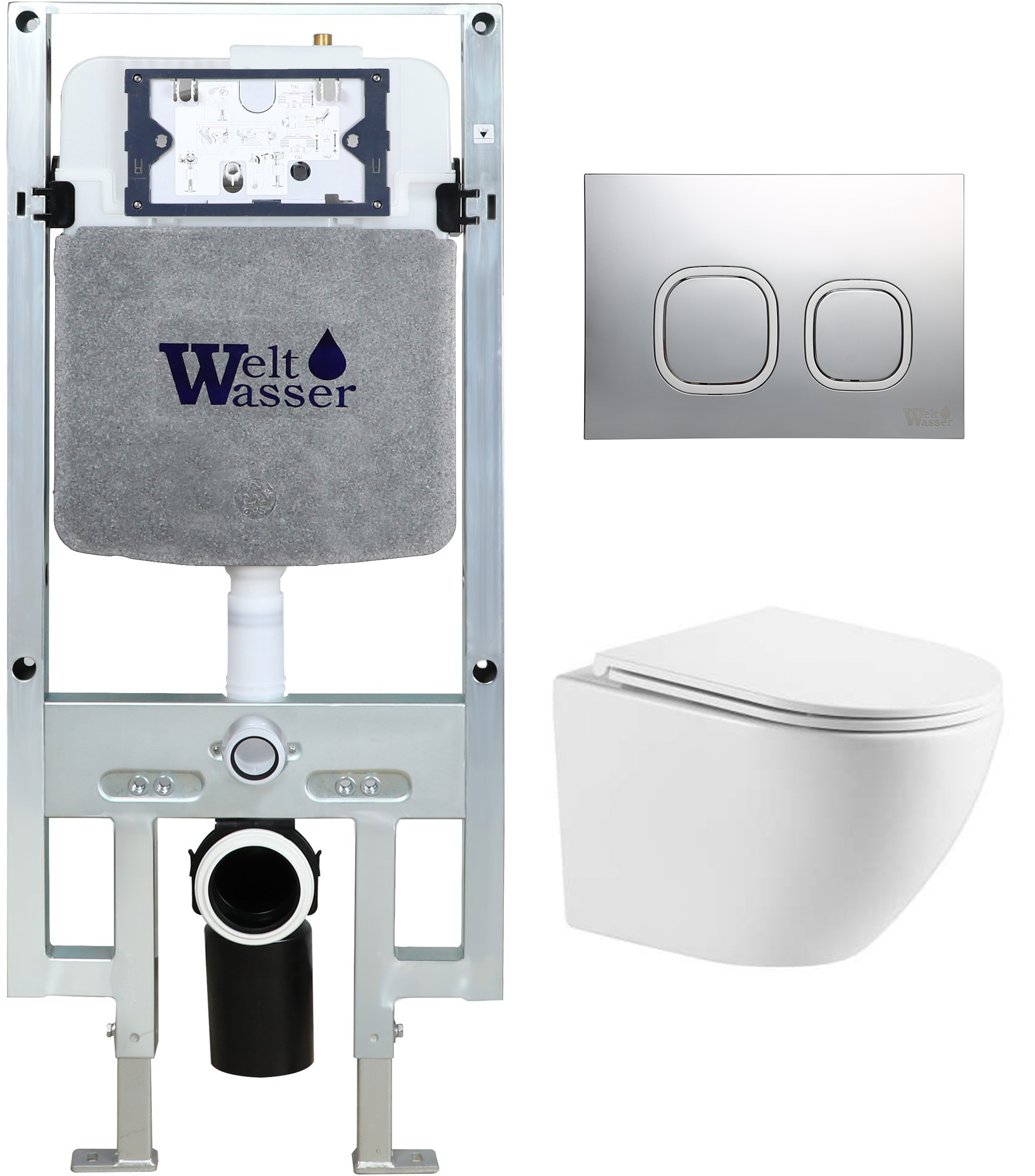 Комплект инсталляции Welt-Wasser AMBERG 497 ST с унитазом MERZBACH 043 XL GL-WT и клавишей смыва AMBERG RD-MT CR матовый хром