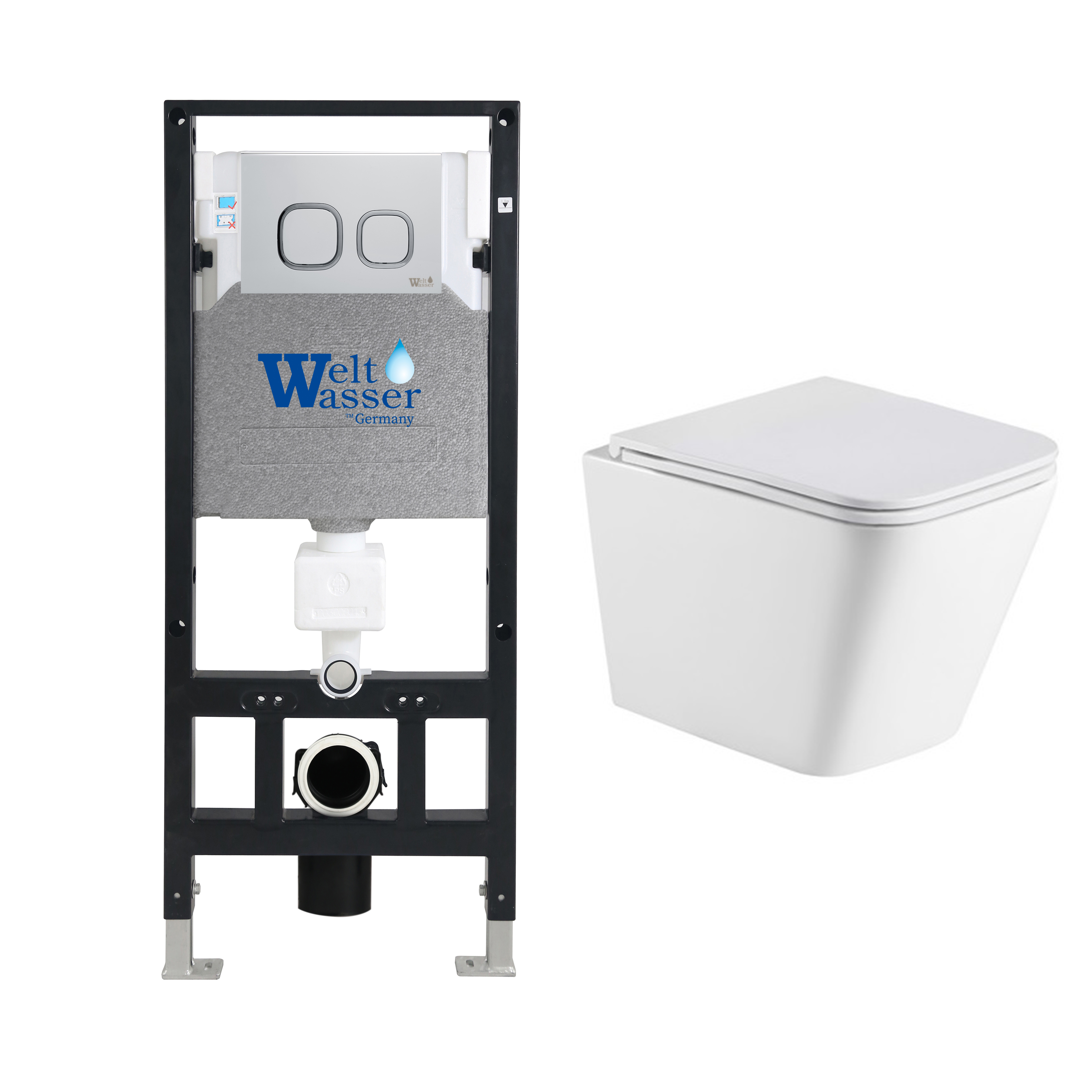 Комплект инсталляции Welt-Wasser AMBERG 506 с унитазом GELBACH 043 GL-WT и клавишей смыва AMBERG RD-WT, белый