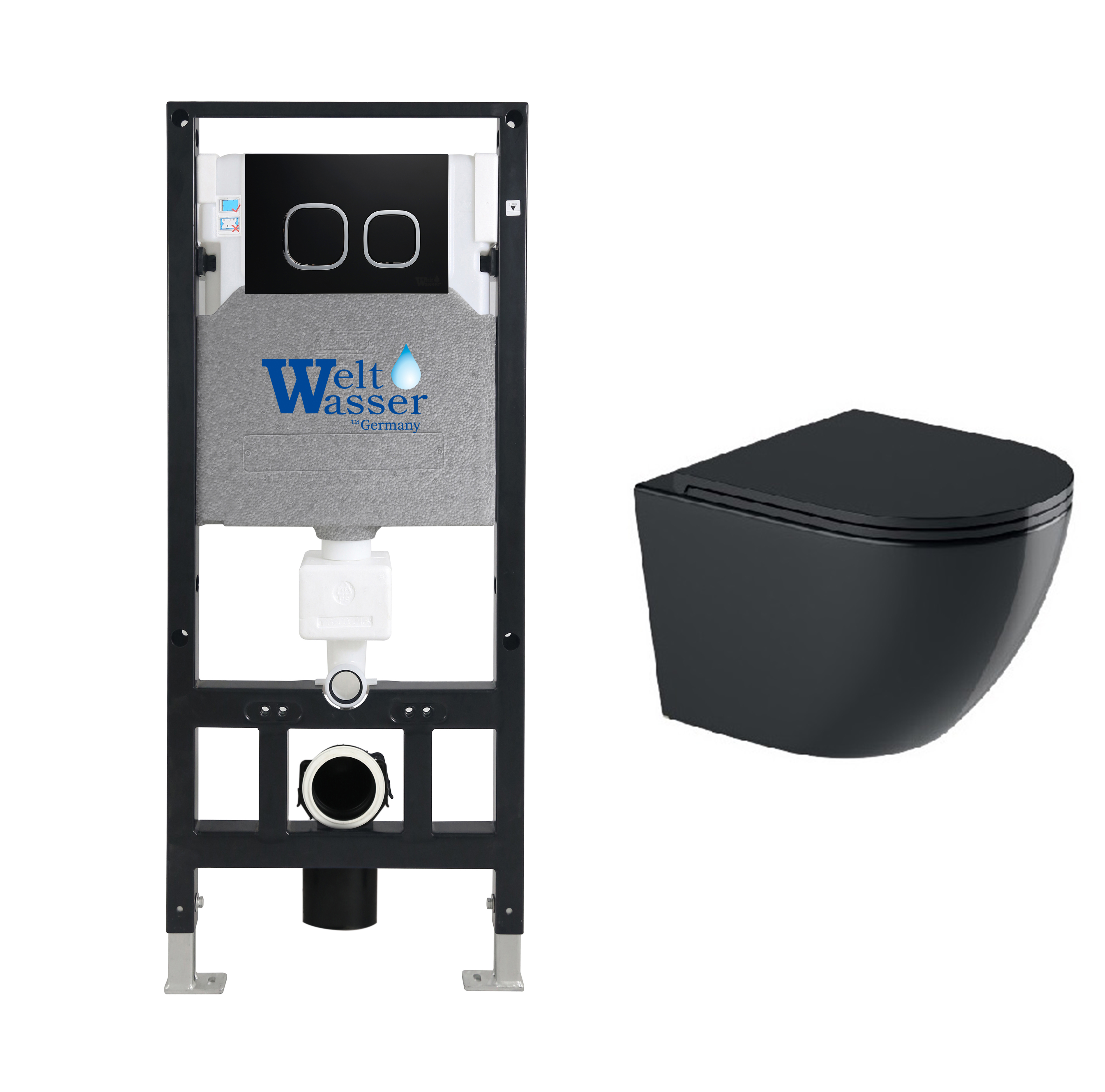 Комплект инсталляции Welt-Wasser AMBERG 506 с унитазом MERZBACH 043 GL-BL и клавишей смыва, AMBERG RD-BL, черный матовый