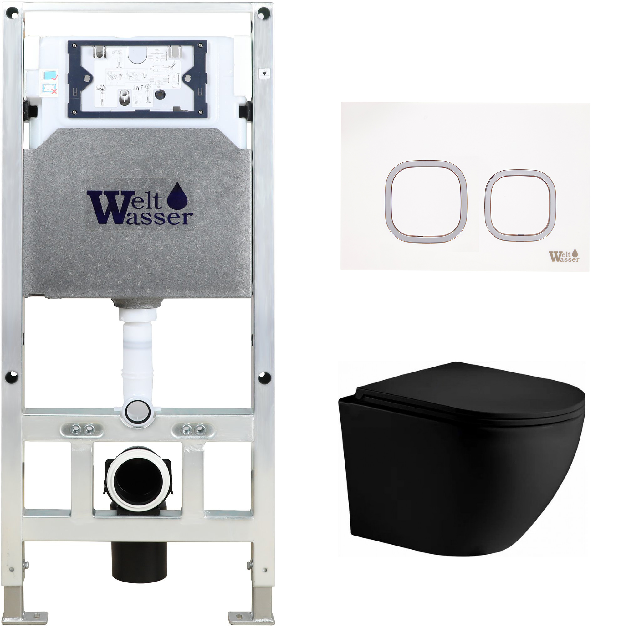 Комплект инсталляции Welt-Wasser AMBERG 506 ST с клавишей смыва AMBERG RD-WT и унитазом MERZBACH 043 XL MT-BL