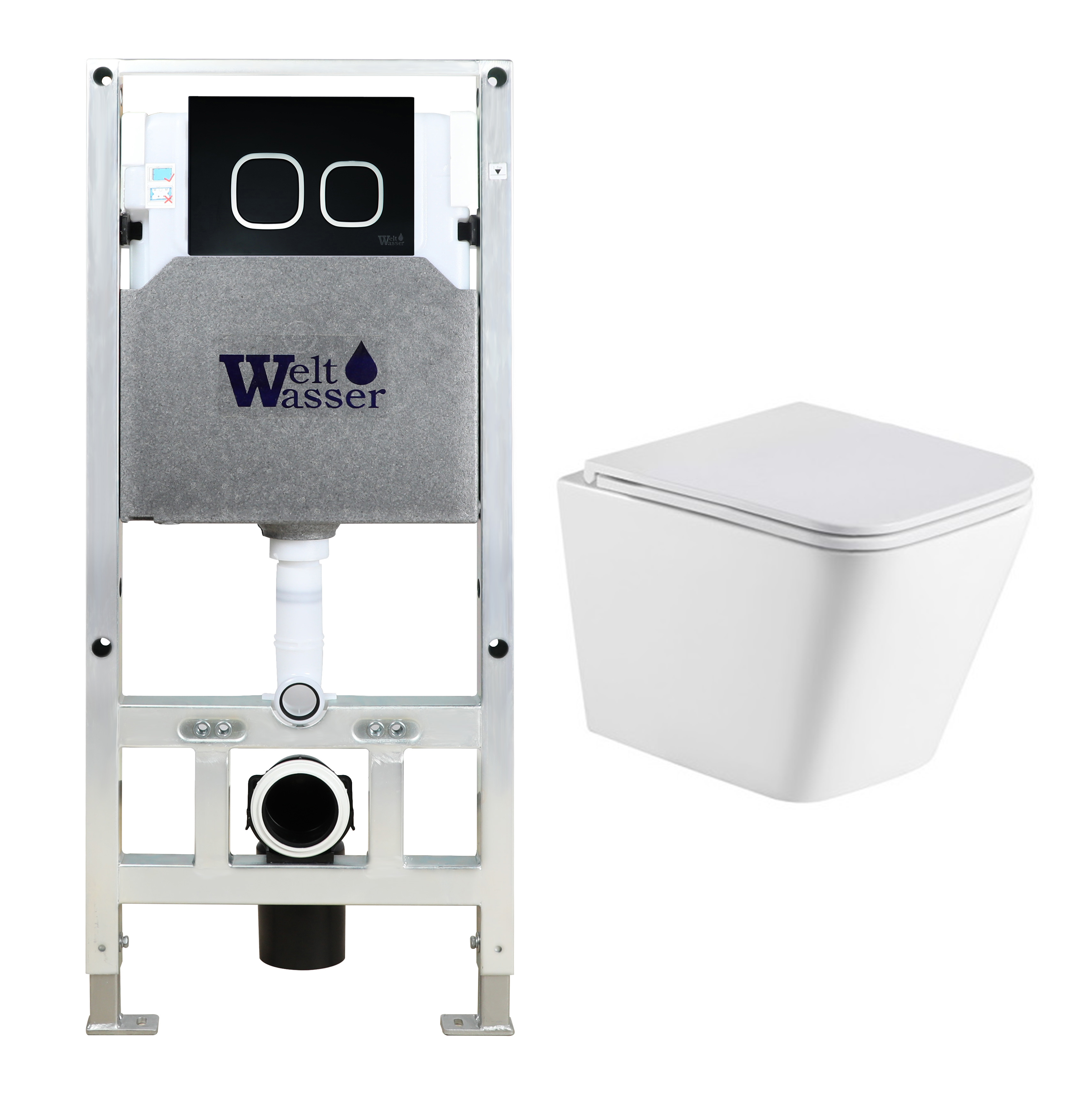 Комплект инсталляции Welt-Wasser AMBERG 506 ST с унитазом GELBACH 043 GL-WT и клавишей смыва AMBERG RD-BL, черный матовый