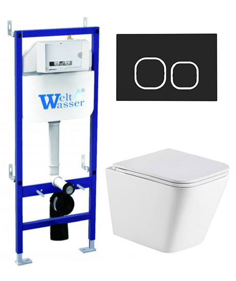 Комплект инсталляции Welt-Wasser BAMBERG 460 с клавишей смыва BAMBERG BL и подвесным унитазом GELBACH 043 GL-WT