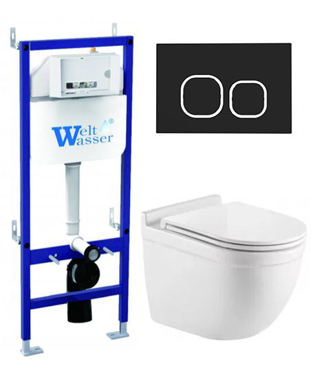 Комплект инсталляции Welt-Wasser BAMBERG 460 с клавишей смыва BAMBERG BL и подвесным унитазом HEIMBACH 043 GL-WT