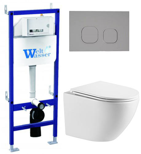 Комплект инсталляции Welt-Wasser BAMBERG 460 с клавишей смыва BAMBERG CR и подвесным унитазом MERZBACH 043 GL-WT