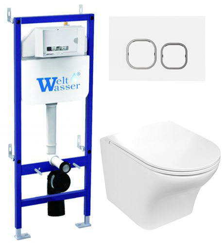 Комплект инсталляции Welt-Wasser BAMBERG 460 с клавишей смыва BAMBERG WT и подвесным унитазом ODENBACH 004 GL-WT