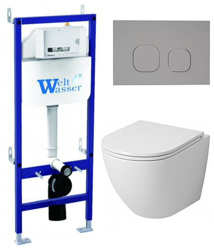 Комплект инсталляции Welt-Wasser BAMBERG 460 с клавишей смыва CR и унитазом Grossman GR-4455SQ