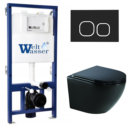 Комплект инсталляции Welt Wasser BAMBERG 525 с клавишей смыва BAMBERG BL и подвесным унитазом MERZBACH 041 XL MT-BL