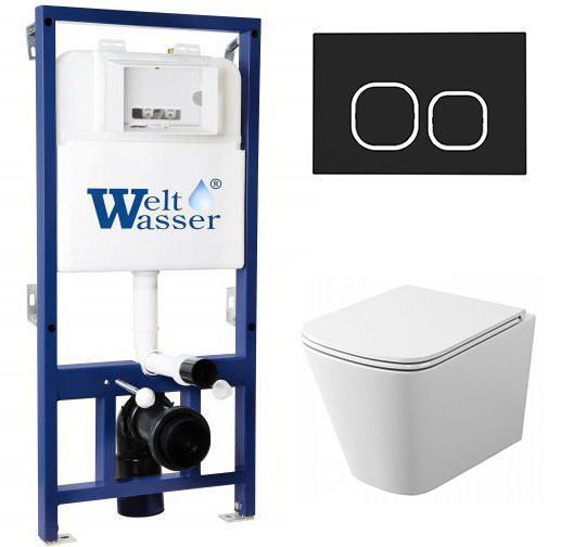 Комплект инсталляции Welt-Wasser BAMBERG 525 с клавишей смыва BL и унитазом Teymi T40302