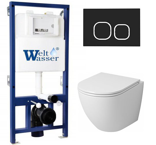 Комплект инсталляции Welt-Wasser BAMBERG 525 с клавишей смыва BL и унитазом Grossman GR-4455SQ