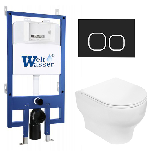Комплект инсталляции Welt Wasser BAMBERG 545 с клавишей смыва BAMBERG BL и подвесным унитазом ERLENBACH 004 GL-WT