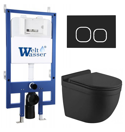 Комплект инсталляции Welt Wasser BAMBERG 545 с клавишей смыва BAMBERG BL и подвесным унитазом HEIMBACH 043 MT-BL