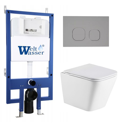 Комплект инсталляции Welt Wasser BAMBERG 545 с клавишей смыва BAMBERG CR и подвесным унитазом GELBACH 043 GL-WT