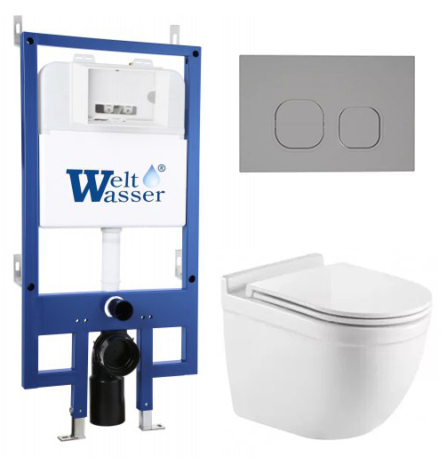 Комплект инсталляции Welt Wasser BAMBERG 545 с клавишей смыва BAMBERG CR и подвесным унитазом HEIMBACH 043 GL-WT