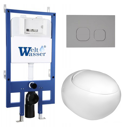 Комплект инсталляции Welt Wasser BAMBERG 545 с клавишей смыва BAMBERG CR и подвесным унитазом JECKENBACH 004 GL-WT