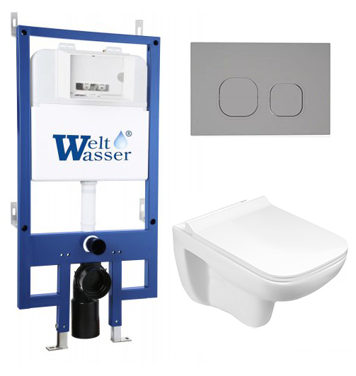 Комплект инсталляции Welt Wasser BAMBERG 545 с клавишей смыва BAMBERG CR и подвесным унитазом KEHLBACH 004 GL-WT