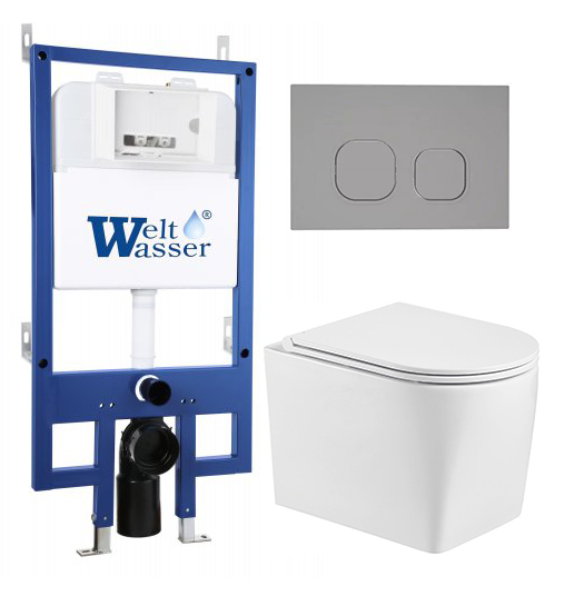 Комплект инсталляции Welt Wasser BAMBERG 545 с клавишей смыва BAMBERG CR и подвесным унитазом NESENBACH 004 GL-WT