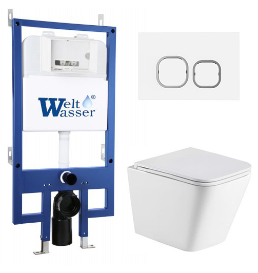Комплект инсталляции Welt Wasser BAMBERG 545 с клавишей смыва BAMBERG WT и подвесным унитазом GELBACH 043 MT-WT