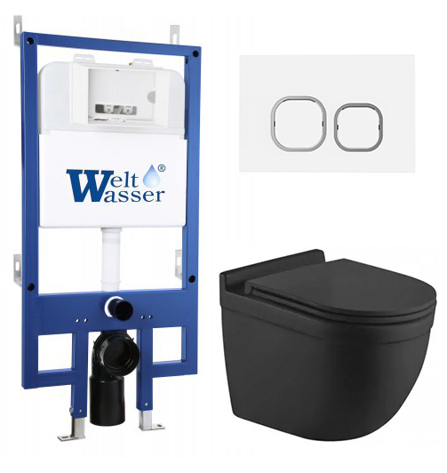 Комплект инсталляции Welt Wasser BAMBERG 545 с клавишей смыва BAMBERG WT и подвесным унитазом HEIMBACH 043 MT-BL