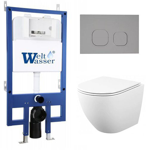 Комплект инсталляции Welt-Wasser BAMBERG 545 с клавишей смыва CR и унитазом Teymi T40102