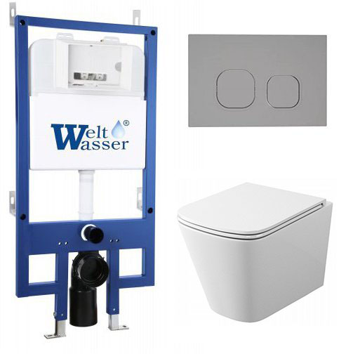 Комплект инсталляции Welt-Wasser BAMBERG 545 с клавишей смыва CR и унитазом Teymi T40302