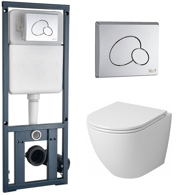 Комплект инсталляции Welt-Wasser MARBERG 410 RD с клавишей смыва CR и унитазом Grossman GR-4455SQ