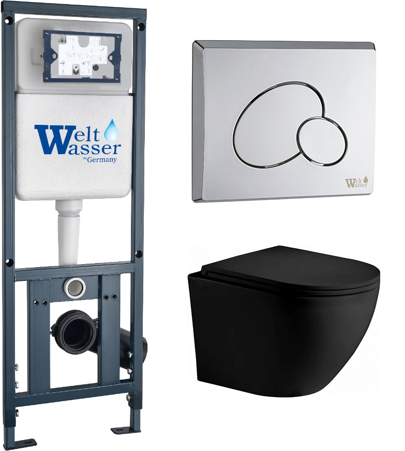 Комплект инсталляции Welt-Wasser MARBERG 410 с клавишей смыва MAR 410 RD CR и унитазом MERZBACH 043 XL MT-BL