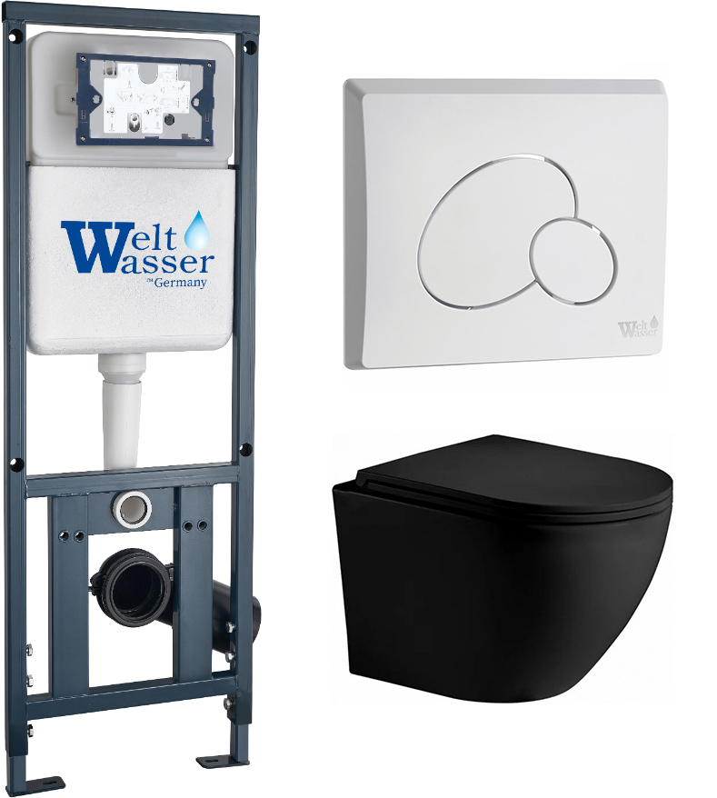 Комплект инсталляции Welt-Wasser MARBERG 410 с клавишей смыва MAR 410 RD GL-WT и унитазом MERZBACH 043 XL MT-BL