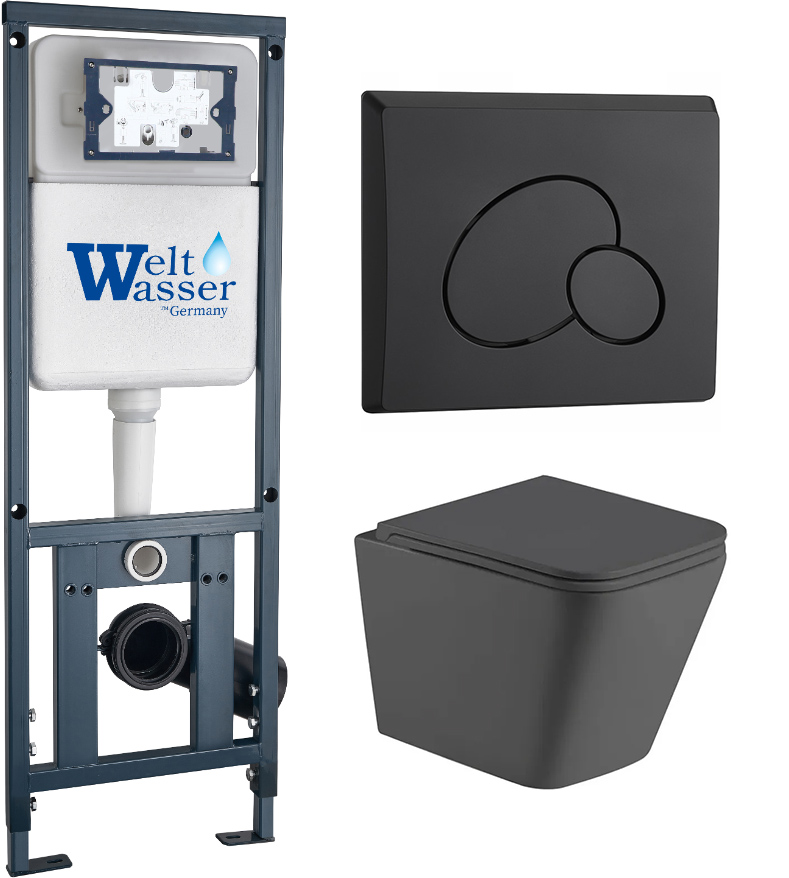 Комплект инсталляции Welt-Wasser MARBERG 410 с клавишей смыва MAR 410 RD MT-BL и унитазом GELBACH 043 MT-GR