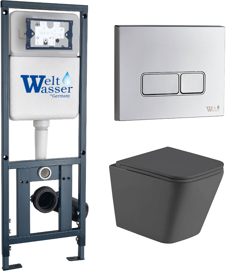 Комплект инсталляции Welt-Wasser MARBERG 410 с клавишей смыва MAR 410 SE CR и унитазом GELBACH 043 MT-GR