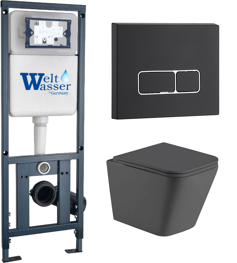 Комплект инсталляции Welt-Wasser MARBERG 410 с клавишей смыва MAR 410 SE MT-BL и унитазом GELBACH 043 MT-GR