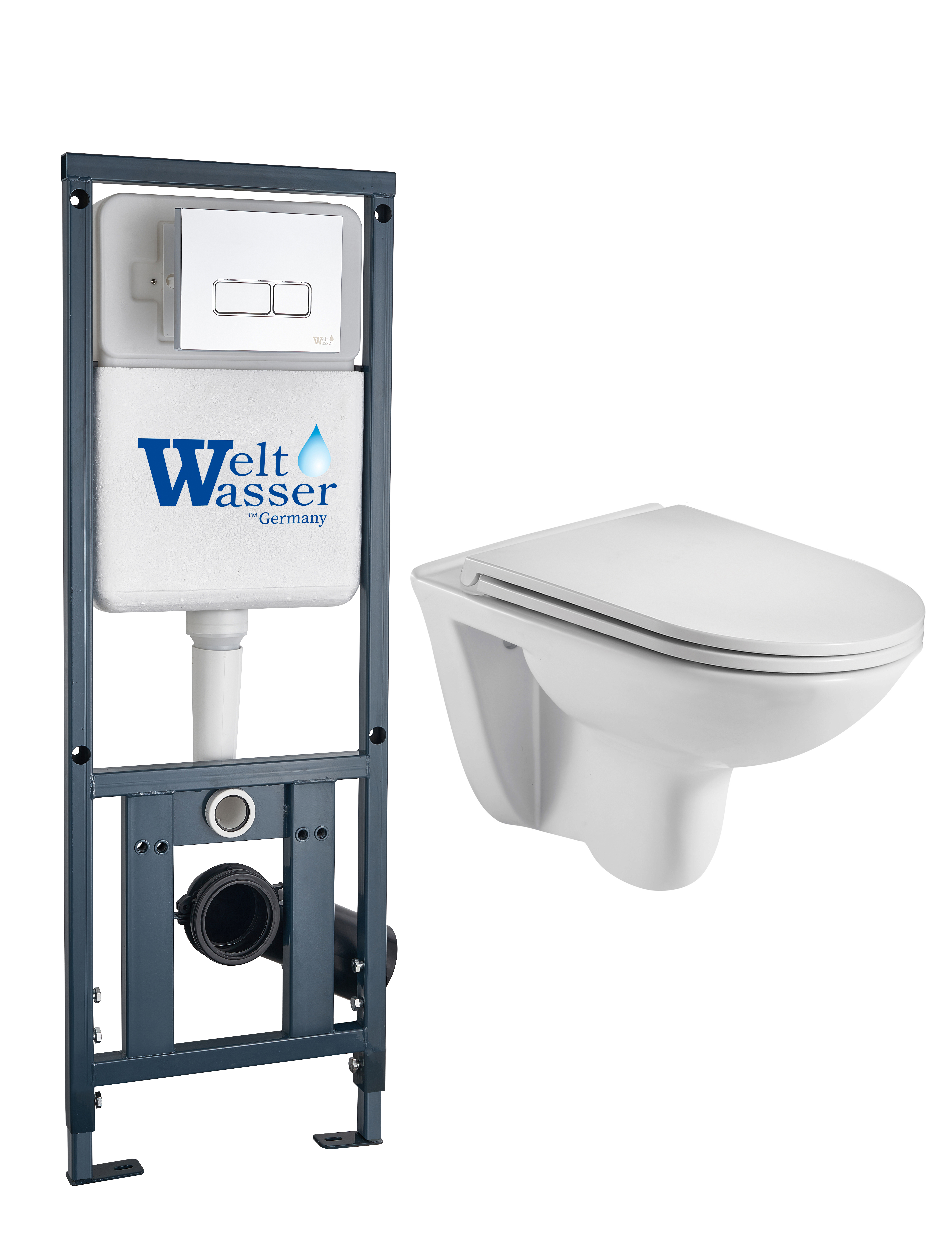 Комплект инсталляции Welt-Wasser MARBERG 410 с унитазом BAARBACH 004 GL-WT и клавишей смыва MAR 410 SE GL-WT, белый глянец