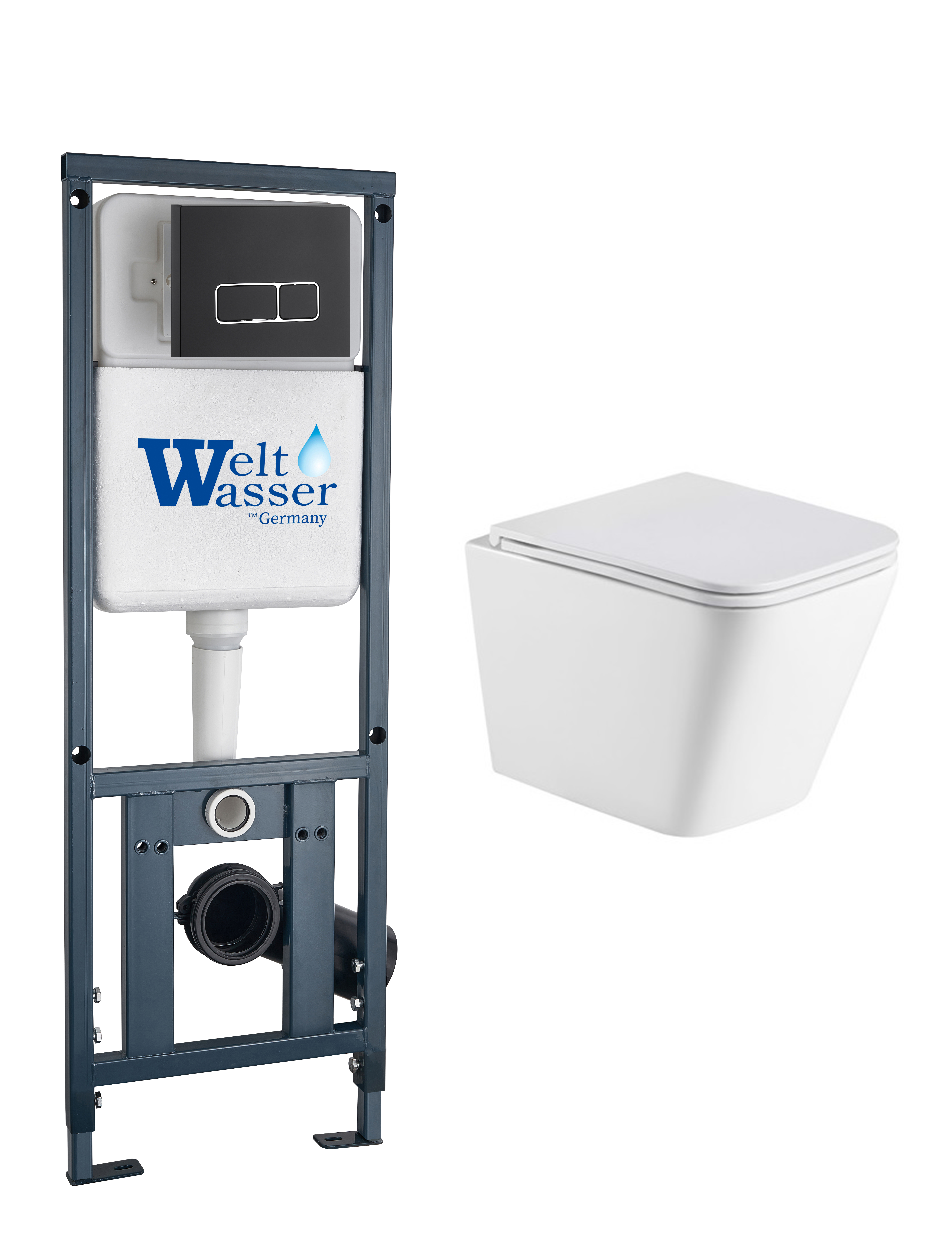 Комплект инсталляции Welt-Wasser MARBERG 410 с унитазом GELBACH 043 GL-WT и клавишей смыва MAR 410 SE MT-BL черный матовый
