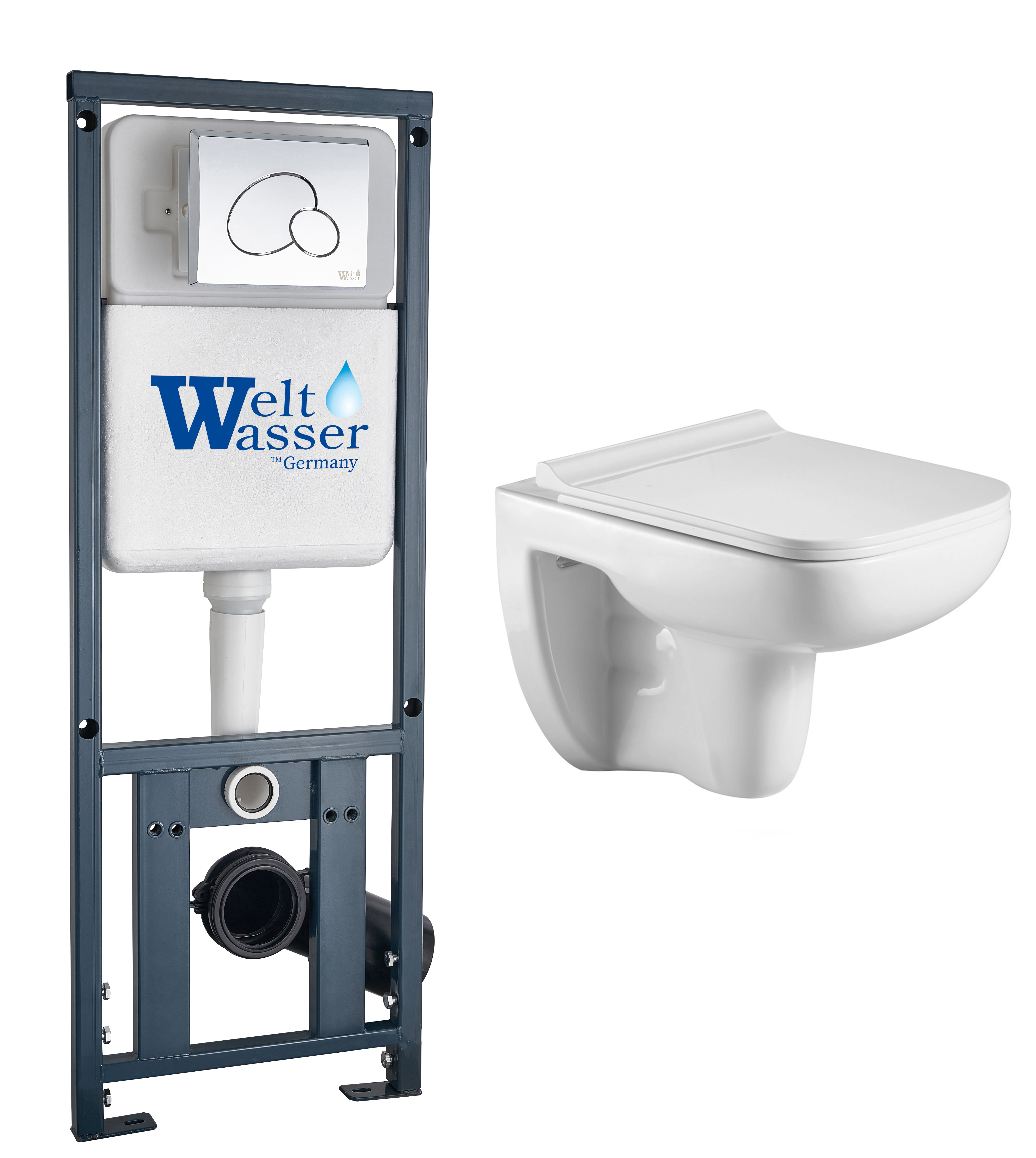 Комплект инсталляции Welt-Wasser MARBERG 410 с унитазом KEHLBACH 004 GL-WT и клавишей смыва MAR 410 RD GL-WT белый глянец