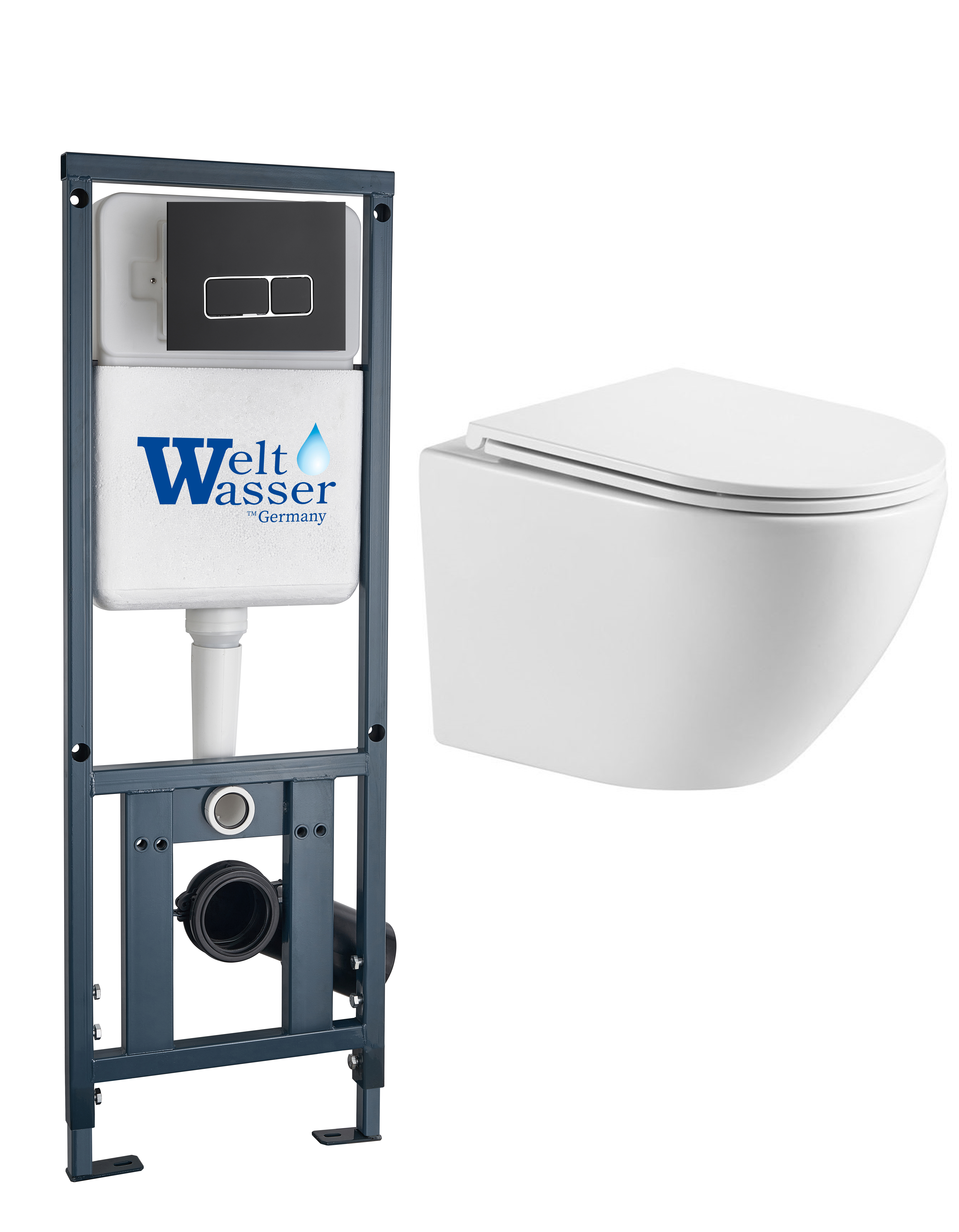 Комплект инсталляции Welt-Wasser MARBERG 410 с унитазом MERZBACH 043 GL-WT и клавишей смыва MAR 410 SE MT-BL черный матовый