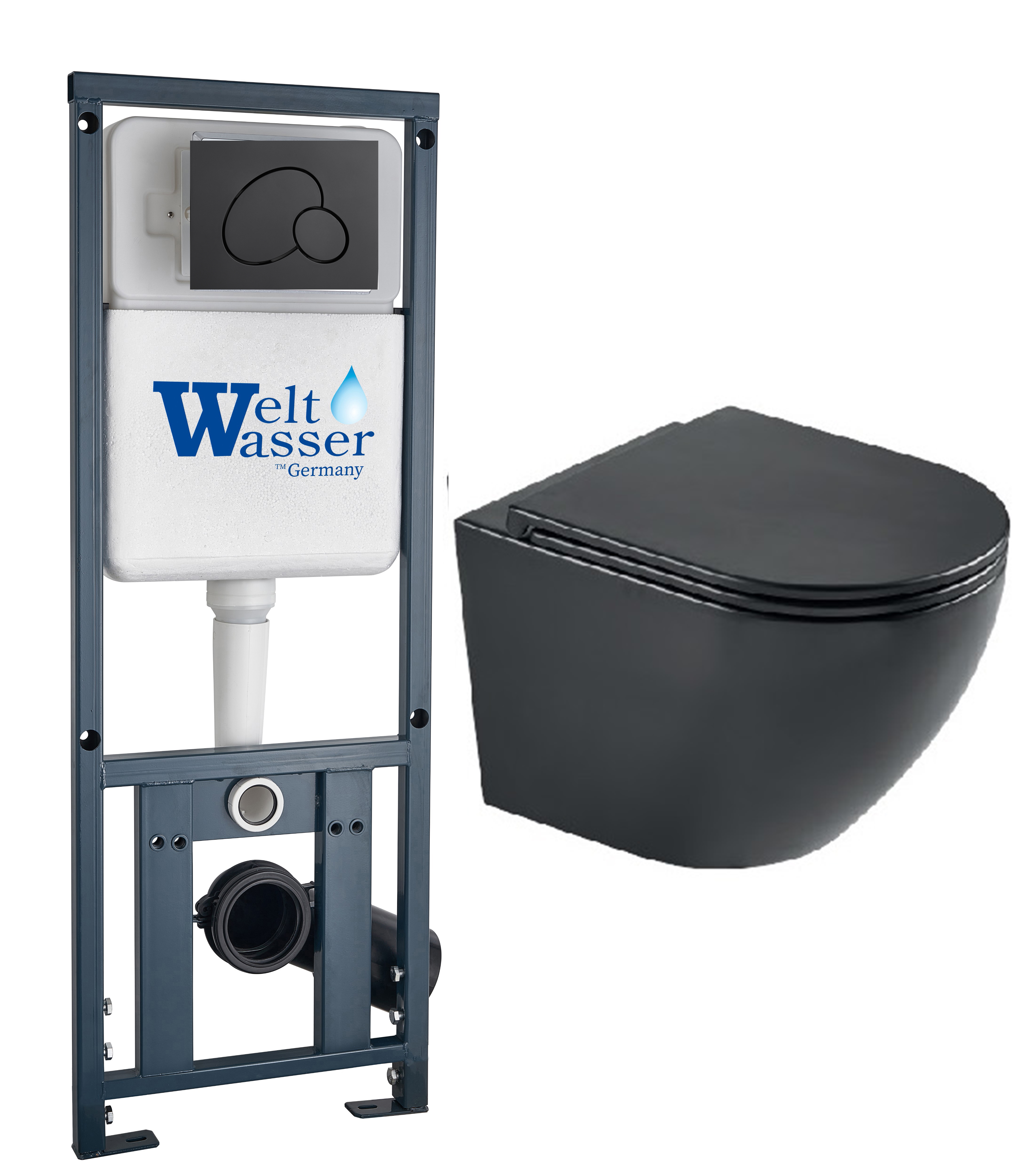 Комплект инсталляции Welt-Wasser MARBERG 410 с унитазом MERZBACH 043 MT-BL и клавишей смыва MAR 410 RD MT-BL черный матовый