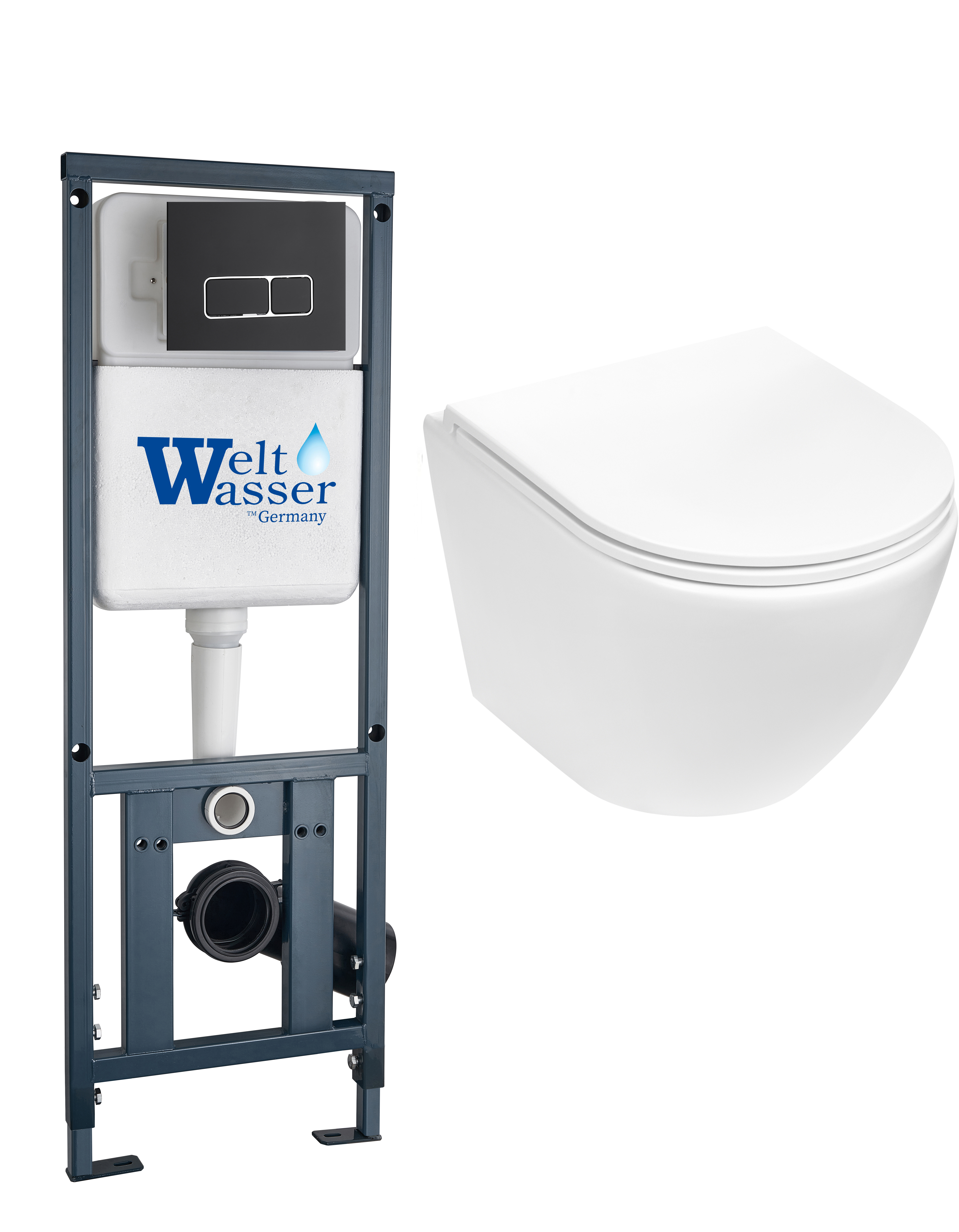 Комплект инсталляции Welt-Wasser MARBERG 410 с унитазом MERZBACH 043 MT-WT и клавишей смыва MAR 410 SE MT-BL черный матовый