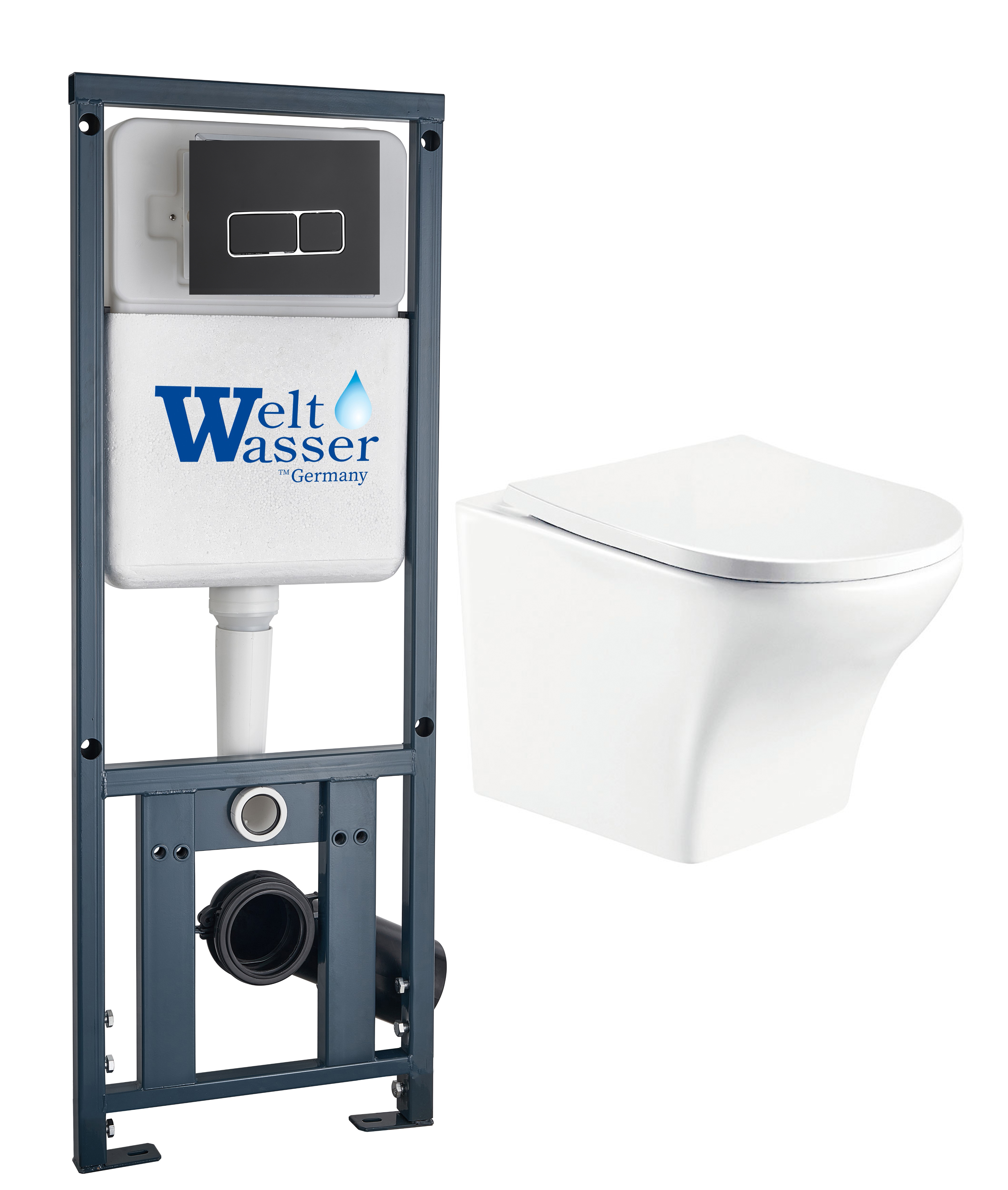 Комплект инсталляции Welt-Wasser MARBERG 410 с унитазом ODENBACH 004 GL-WT и клавишей смыва MAR 410 SE MT-BL черный матовый