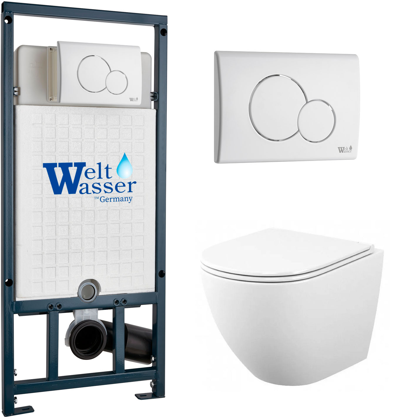 Комплект инсталляции Welt-Wasser MARBERG 507 RD с клавишей смыва WT и унитазом Teymi T40102